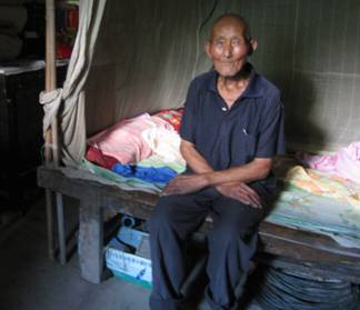 老兵现状:无收入,老伴很早去世,现在有结石、疝气、脚肿大、骨头疼痛等多种疾病,由孙女照顾,乐观开朗。