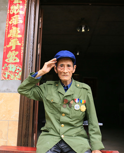 从军经历:1941年在马脑村抓壮丁送泸永师管区,住了1个多月后到贵州遵义桐梓受训住了半年,42年到湖南(记不起详细地址),后来又到了广西(都是走路),参加了黄沙河战斗,在那“还差点牺牲了”,再后来日本就投降了,我部回到贵阳休整。休整过后又到湖南、山东沂县,48年在枣庄被俘。我们的长官是:军长陈牧农,师长王声溢,团长雷鸣(黄埔生)。